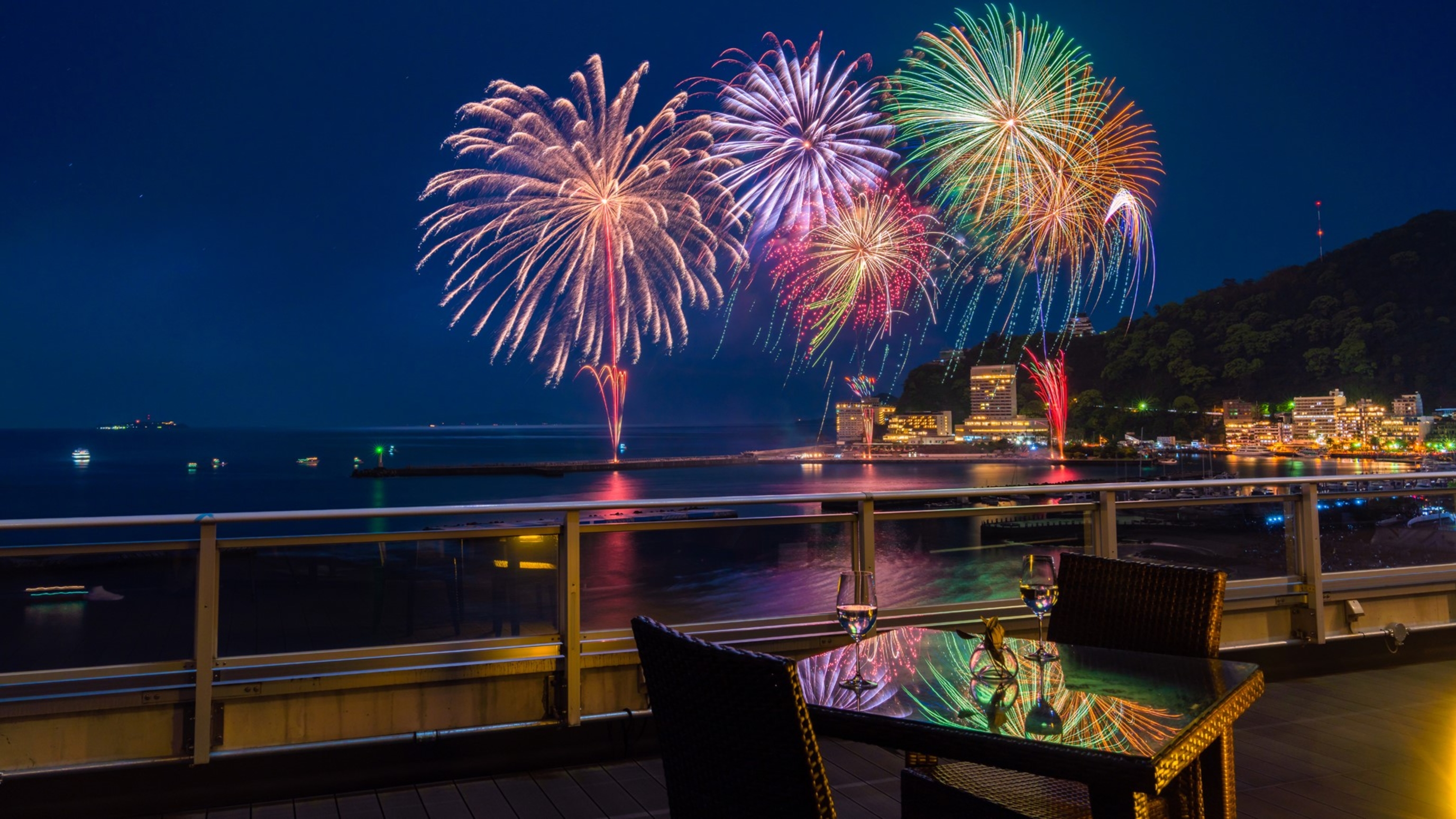 熱海の夏の風物詩でもある『熱海海上花火大会』も、全室オーシャンビューの客室や、大浴場で温泉につかりなららも観ることができます。