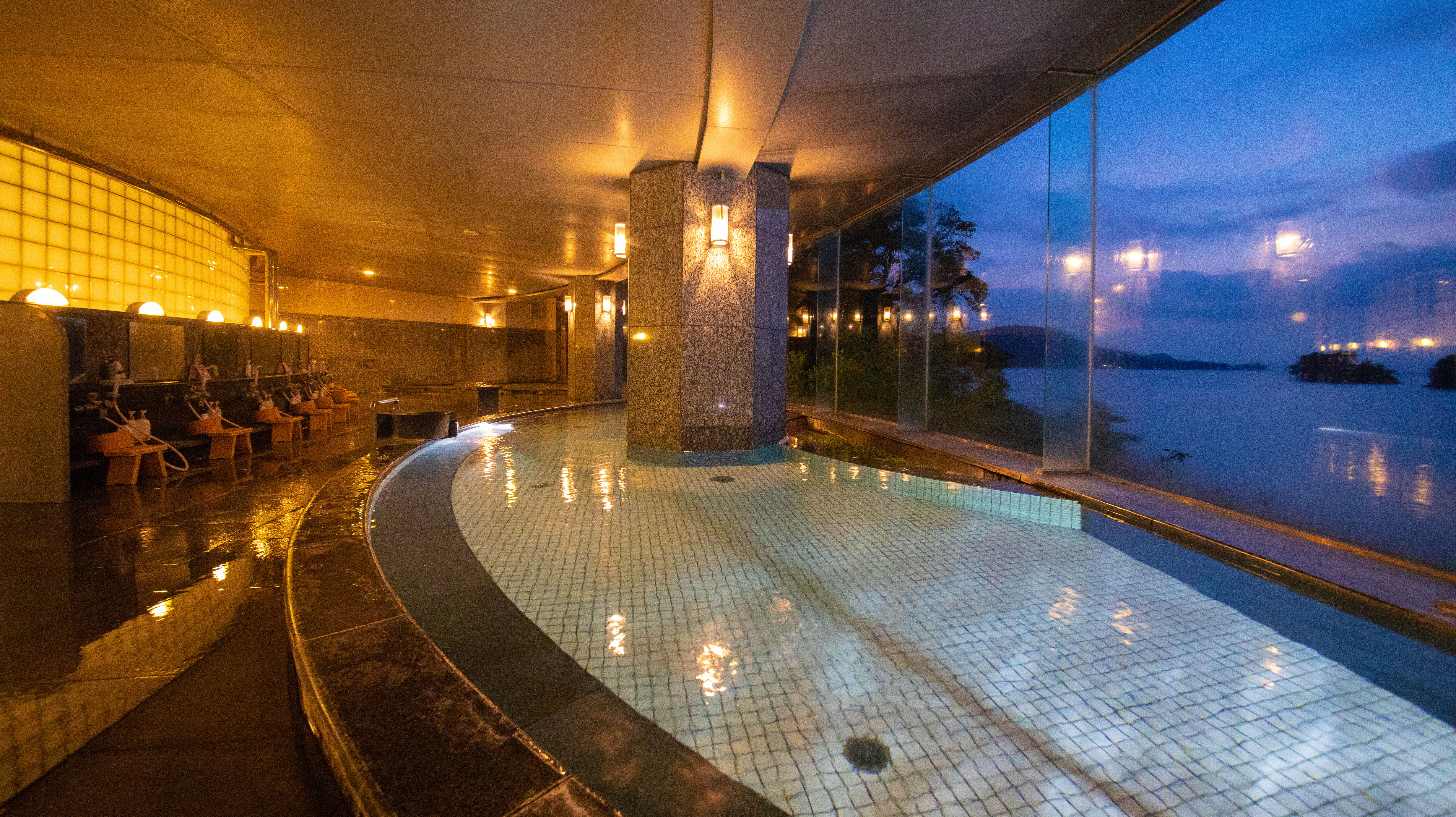 三ツ島が見える広い展望風呂では足を伸ばしてゆっくりリラックス♪