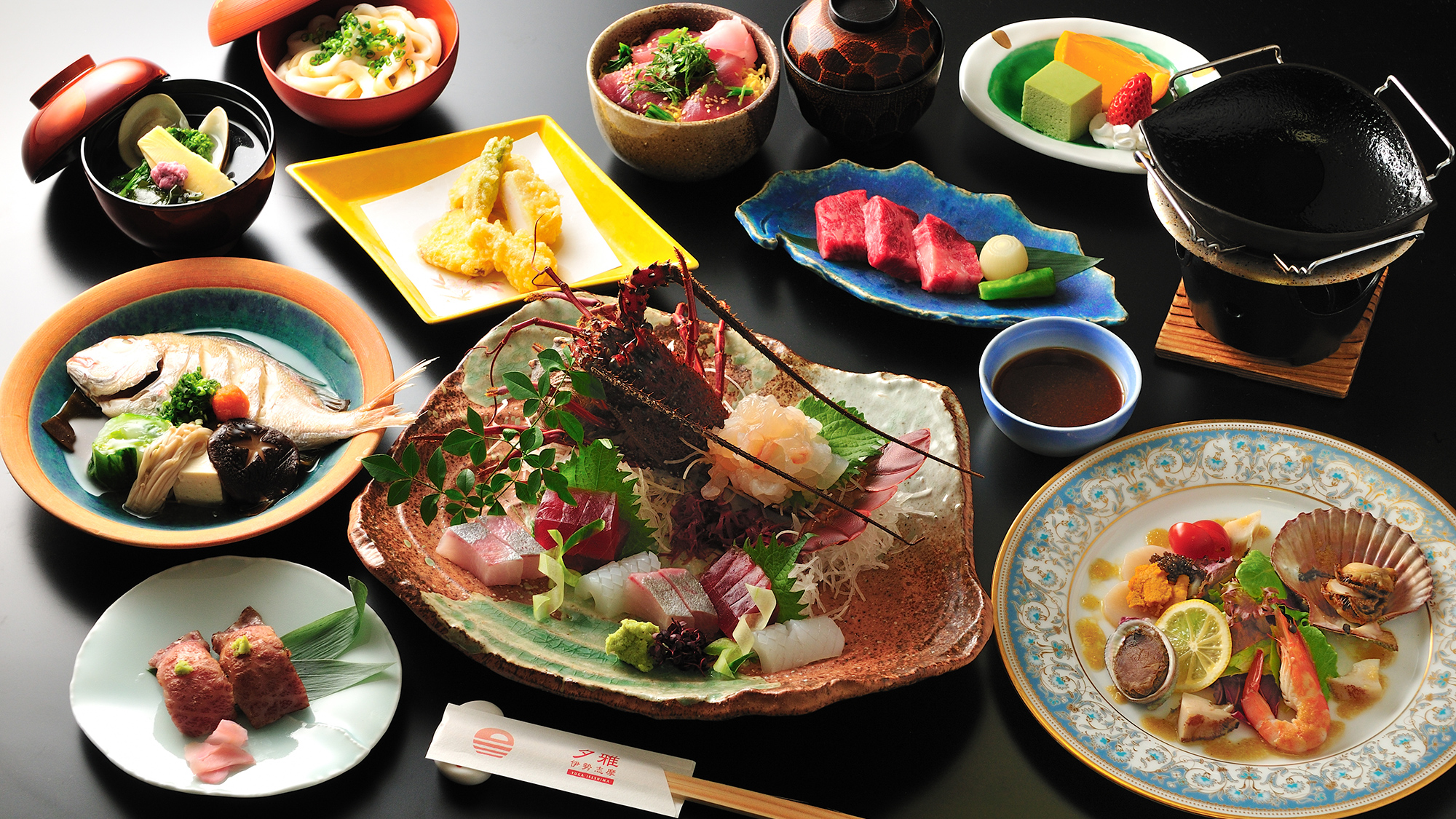 伊勢海老と黒毛和牛付きの創作和懐石が人気!